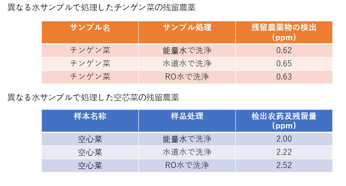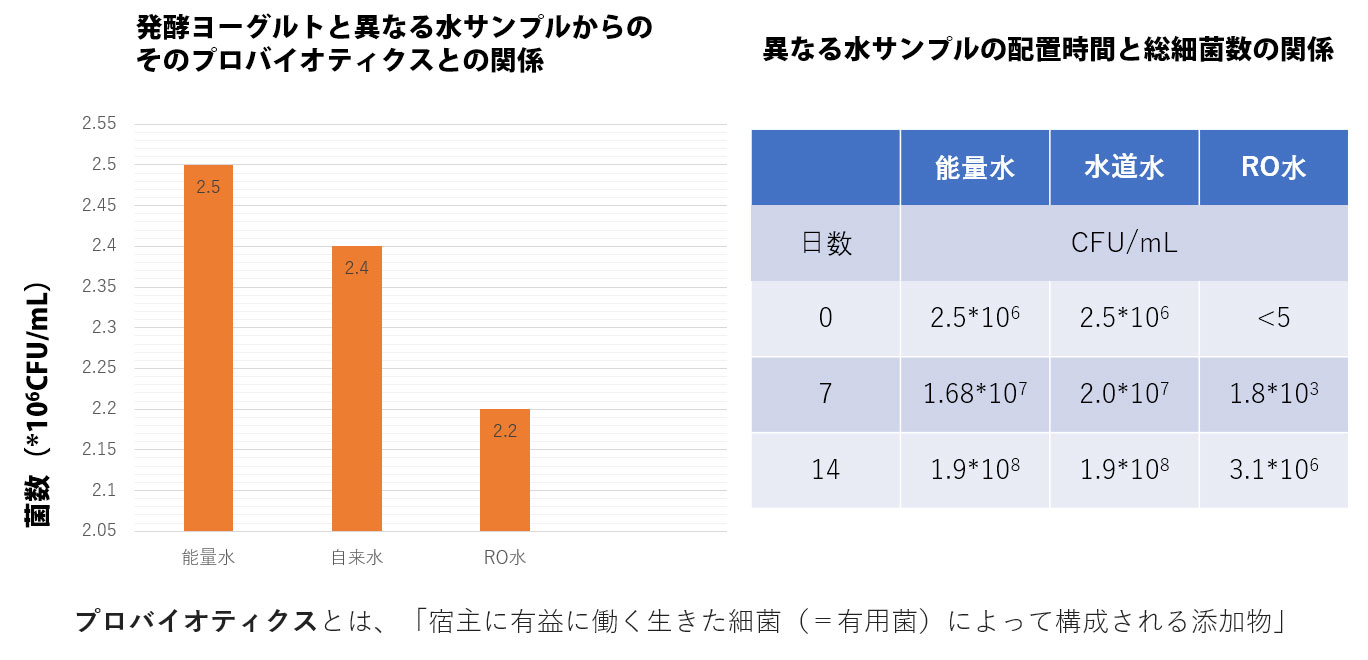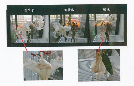 注) RO : 逆浸透浄水器ろ過生成水 能量水: ナノビートウォーター 自来水 : 水道水